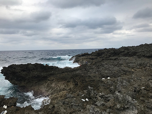 日本の西の果ての国境、与那国島の位置は台湾の隣。大人になった僕は、ついに与那国島の地面を踏むこととなった。レンタカーを借りて島内を走り始めるとすぐに森が見えてきた。「あそこが、ヨナグニサンの生息する森か!」とは思ったものの、潮間帯に生息するダニたちを採集するのが今回の目的なので通り過ぎた(これが大人になるということなのだろう)。海岸に到着してから潮が引く時間を狙って、急いで岩礁地帯をいくつも回ってダニのすんでいる藻類を採取した。