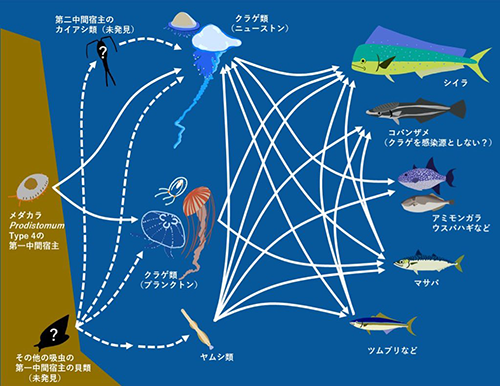 図5. クラゲを経由して魚に感染する吸虫の感染経路(推定)(