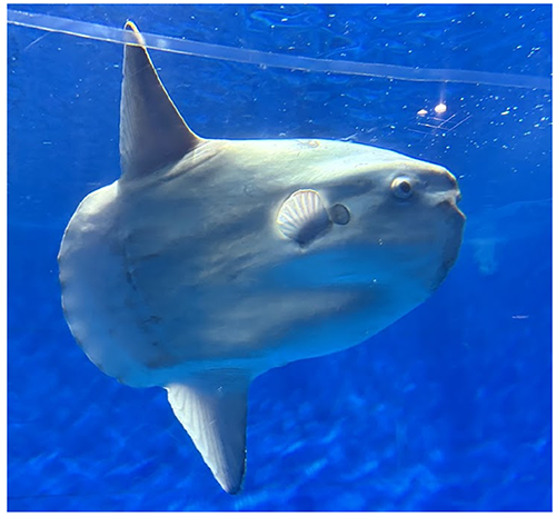 図1. 水族館をゆうゆうと泳ぐマンボウ(大洗水族館にて)。