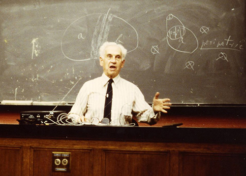 図31-1は、1987年に私がカリフォルニア大学のバークレー校に共同研究者だったアラン・ウイルソンを訪ねたときに、マイヤーがたまたまそこで講演していたので、聴講した際のものである。講演の内容は、彼自身の種分化の理論であった。